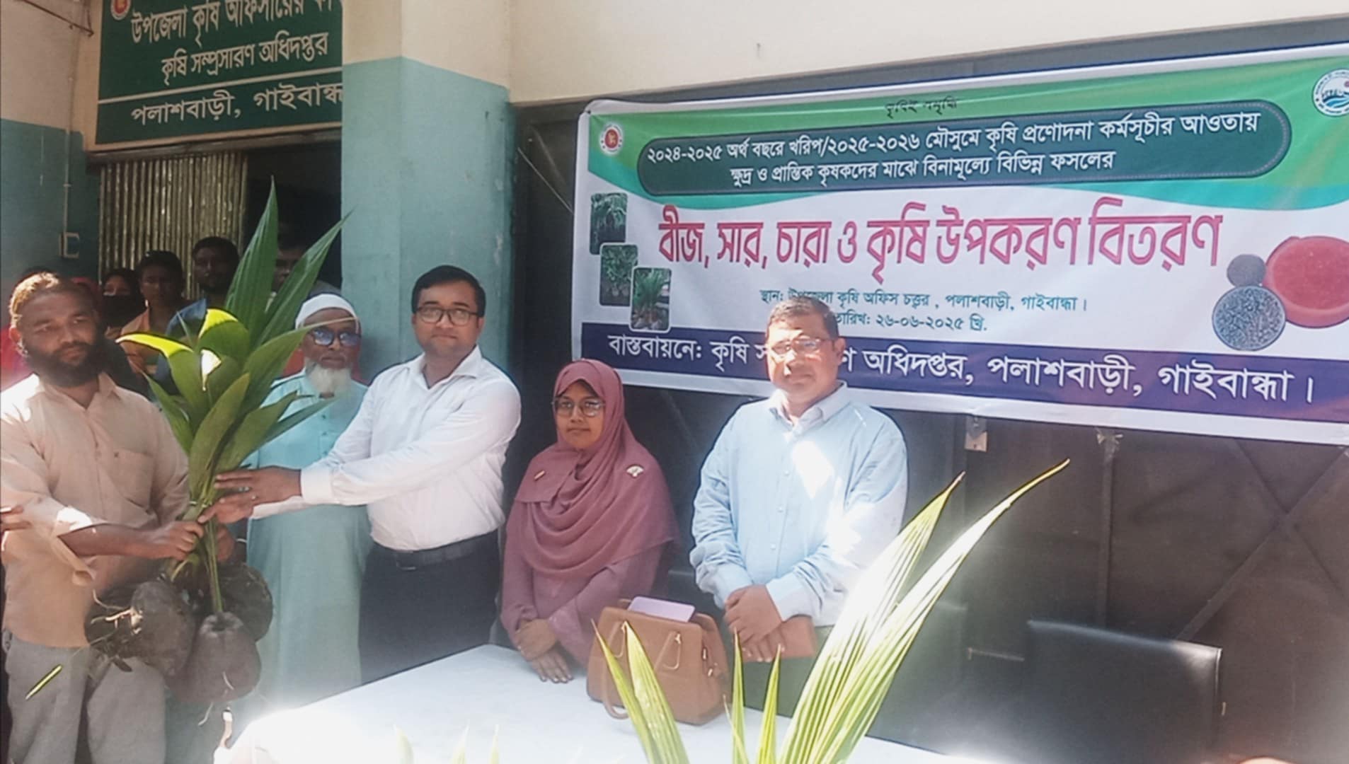 গাইবান্ধার পলাশবাড়ীতে ২৫০ জন প্রান্তিক কৃষকেরর প্রত্যেককে ৫ টি করে মোট ১২৫০ টি নারিকেল গাছের চারা বিনামূল্যে বিতরণ করা হয়েছে।