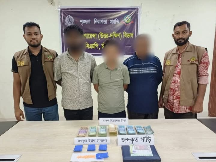 চট্টগ্রাম ডিবি (উত্তর) অভিযানে মাদক চক্রে আঘাত, ইয়াবা ও নগদ টাকাসহ আটক তিন কারবারি
